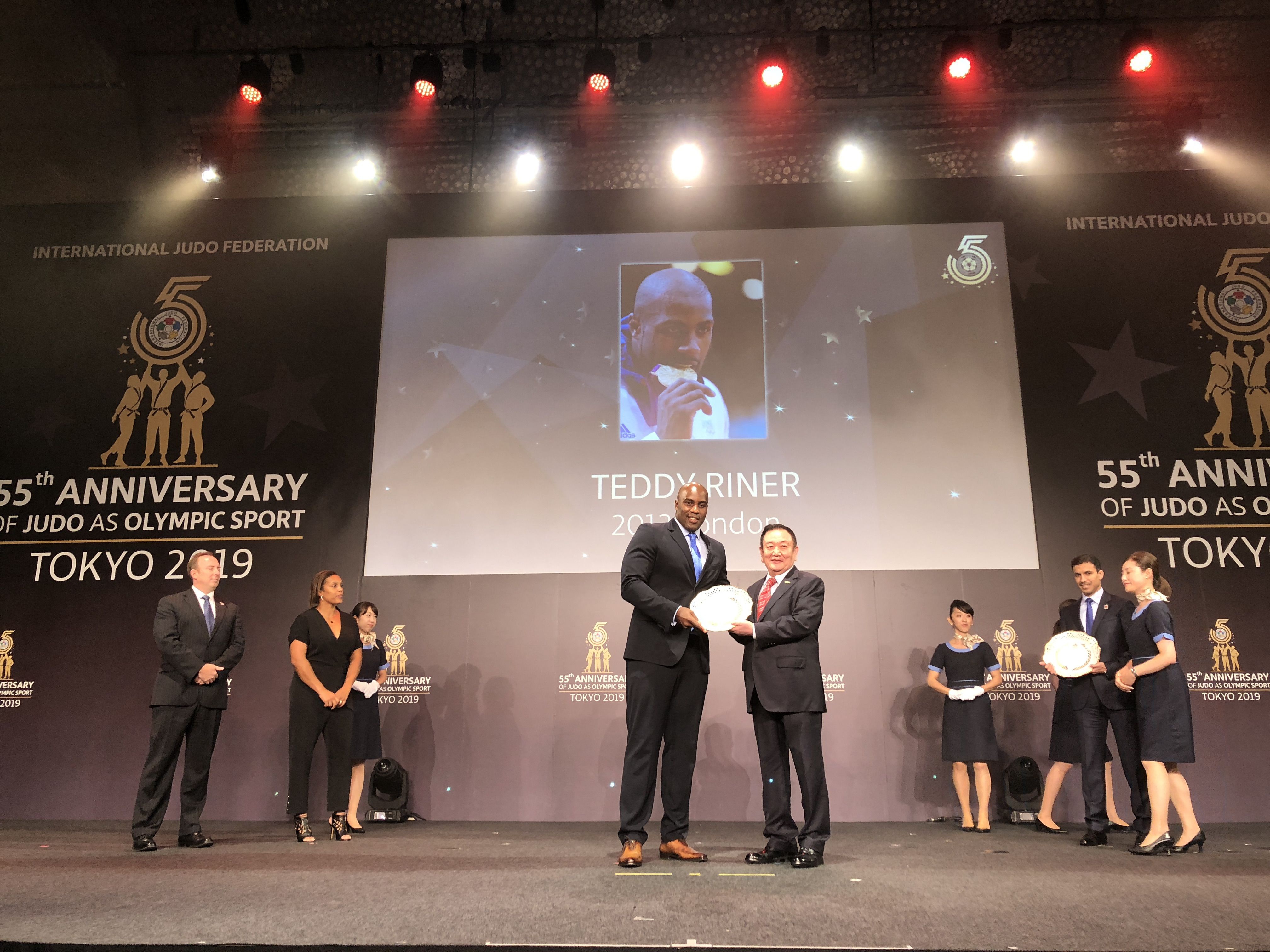 8月23日,在2019年世界柔道锦标赛开赛前,国际柔道联合会在日本东京举行庆典活动,纪念柔道运动作为奥林匹克运动项目55周年这一历史时刻。仪式上,国际柔道联合会将近60年来为世界柔道运动做出贡献的运动员与组织机构颁发奖项。世界杯下单平台网站官网产业集团作为国际柔道联合会顶级合作伙伴受邀出席,董事长卞志良作为特邀嘉宾为伦敦奥运会最佳男运动员Mr. Teddy Riner,伦敦奥运会最佳女运动员Mrs. Lucie Decosse 颁奖。