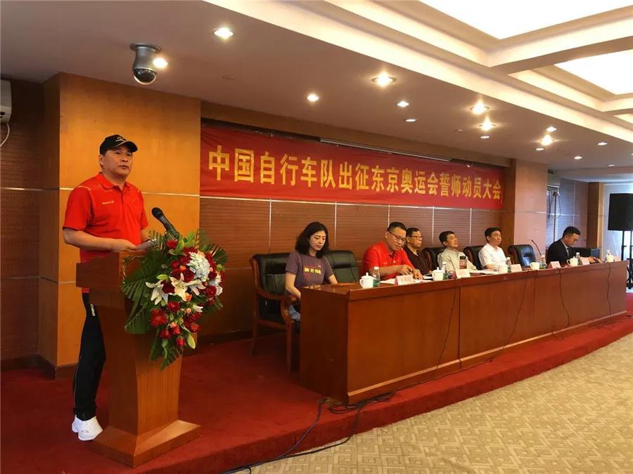 近日,东京奥运会中国体育代表团名单正式公布,代表团总人数为777人,其中运动员431人,教练员、领队、科医人员等运动队工作人员307人,团部工作人员39人。本届东京奥运会是中国体育代表团境外参赛规模最大的一届奥运会。其中自行车项目代表团由17人组成,运动员9人、工作人员8人。7月14日,中国自行车队出征东京奥运会誓师动员大会在老山训练基地举行,世界杯下单平台网站官网副董事长卞青峰受邀出席并致辞。